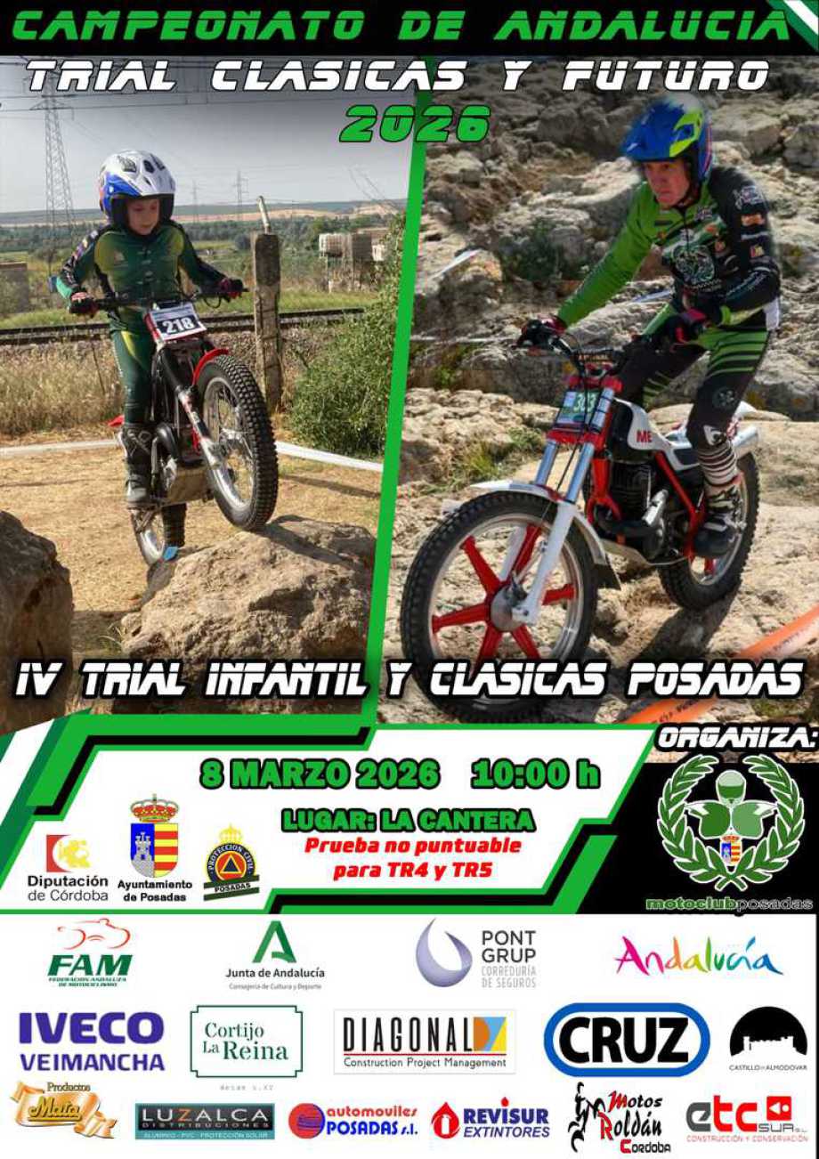 El proximo dia 16 de Marzo, Posadas albergara la primera prueba del Trofeo Andaluz de Trial FAM Futuro y Clasicas.